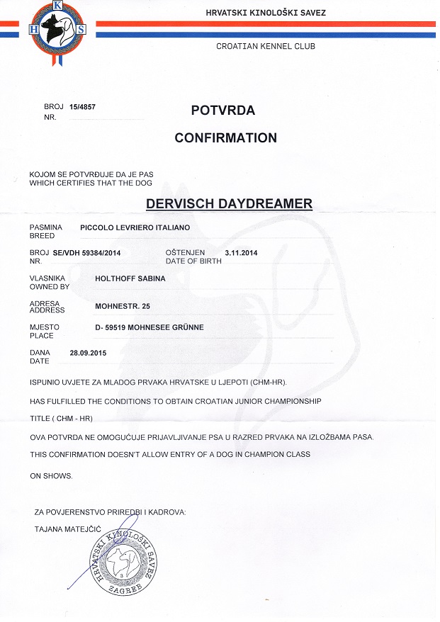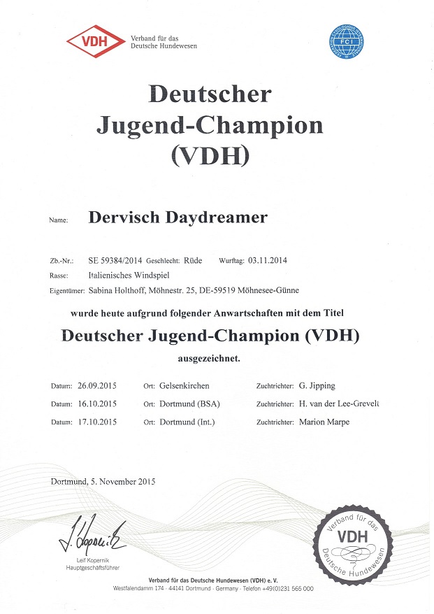 Rüden Jugendklasse V1,CAC,BOB und best in group !!